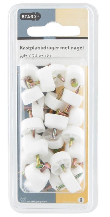 24 Starx kastplankdragers met afgeplat steunvlak, nagel Ø15 mm-dik 7 mm wit