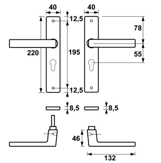AXA binnendeurbeslag Edge PC55 met deurklink Riga aluminium F1
