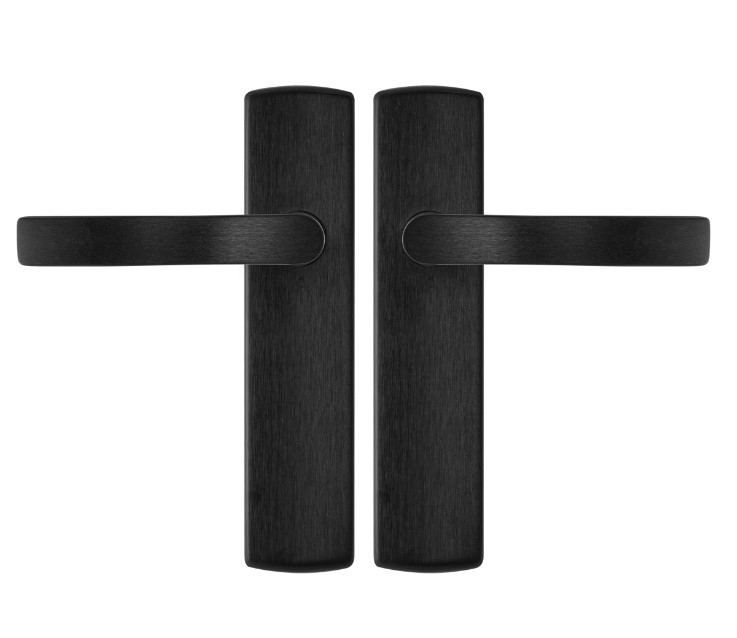 Ergonomisch vormgegeven deurklink en schilden.