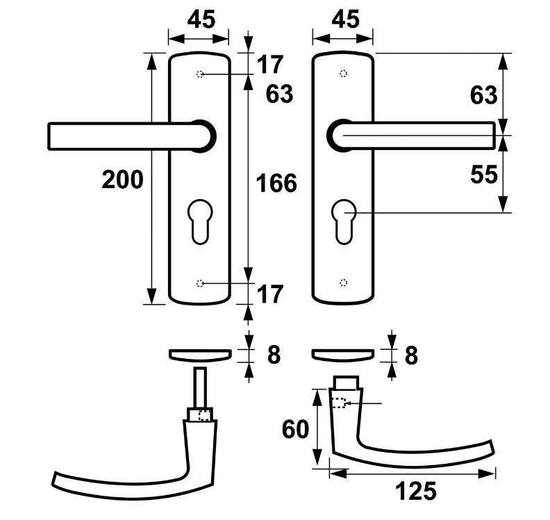 AXA curve klik schild PC55 met deurklink blok aluminium F1
