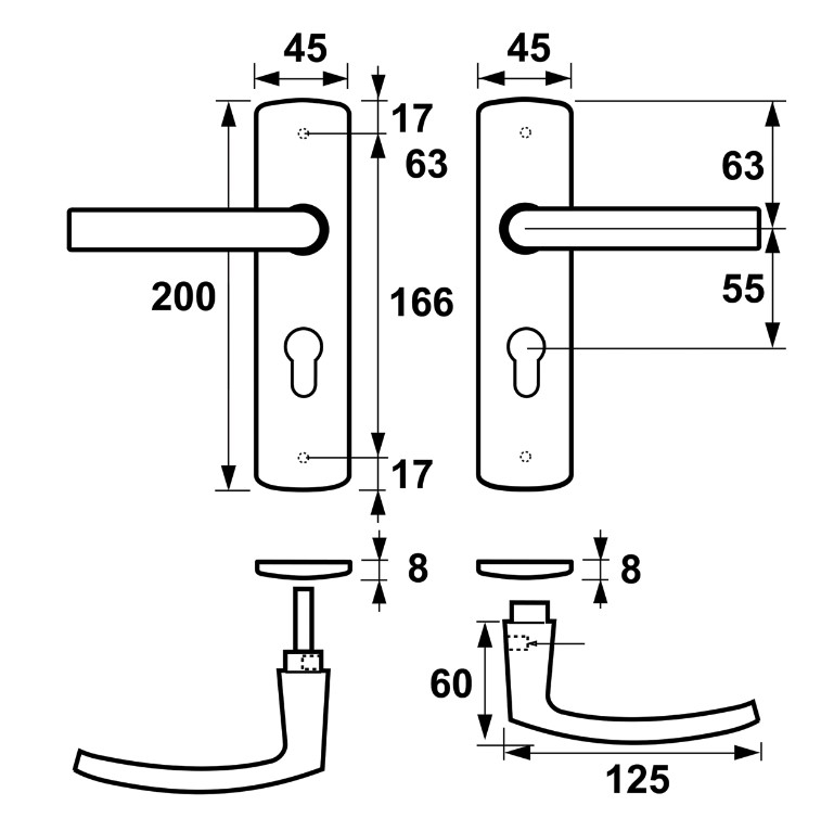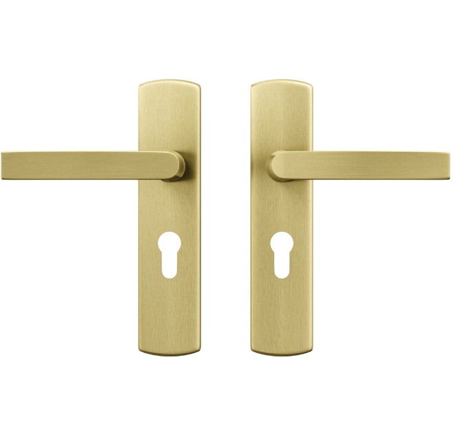 Ergonomisch vormgegeven deurklink en schilden.