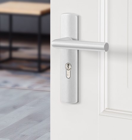 Geen zichtbare bevestigingspunten, doordat het deurschild over een kunststof basisplaat wordt geklikt