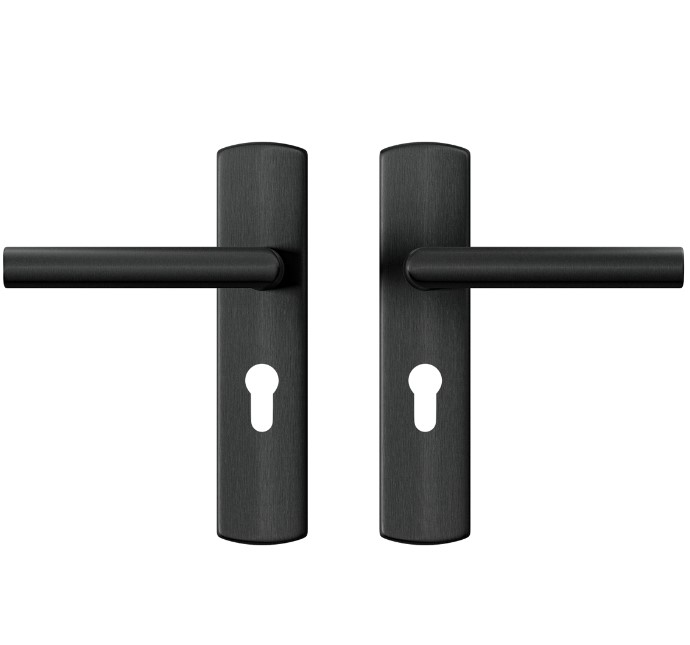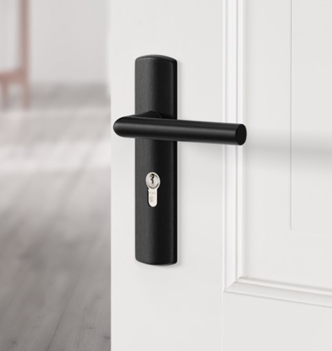 Ergonomisch vormgegeven deurklink en schilden.