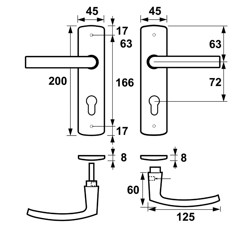 Toepassing: voor buiten- en binnendeuren, 38 tot 50 mm dik.