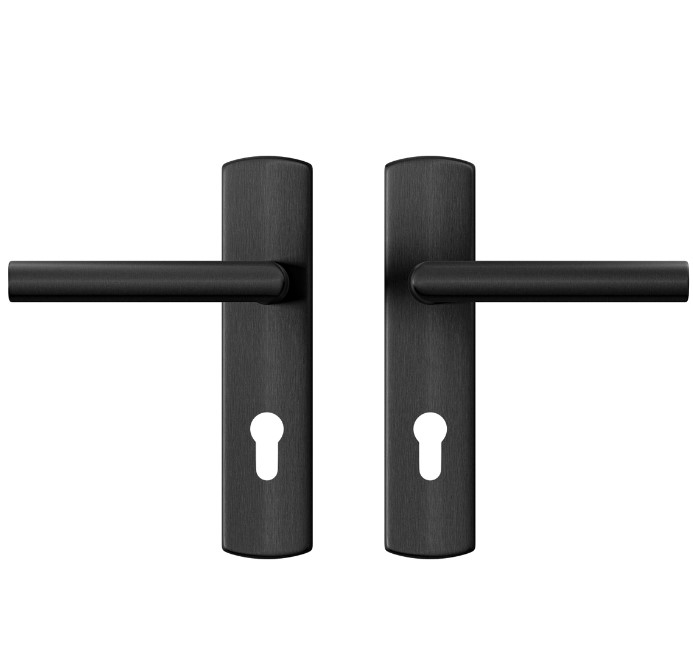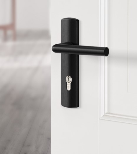 Ergonomisch vormgegeven deurklink en schilden.