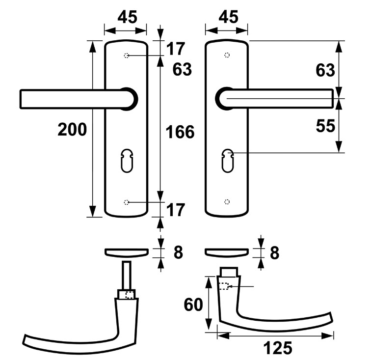 Toepassing: voor buiten- en binnendeuren, 38 tot 50 mm dik.