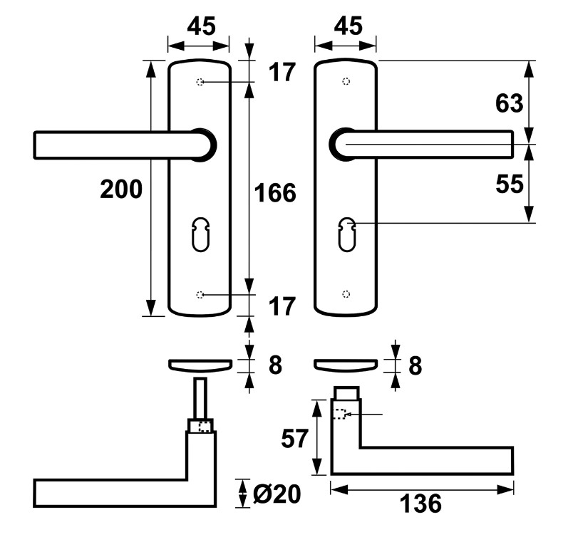 AXA curve klik schild SL56 met deurklink Milan aluminium F1