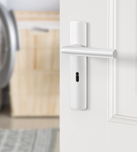 Geen zichtbare bevestigingspunten, doordat het deurschild over een kunststof basisplaat wordt geklikt