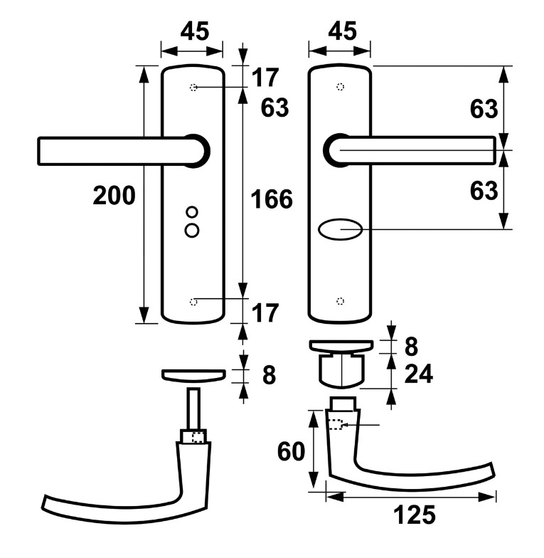 AXA curve klik schild WC63/8 met deurklink blok aluminium F1