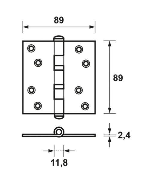 Lichtlopend, stalen AXA kogellagerscharnier met een hoog draagvermogen en rechte hoeken.