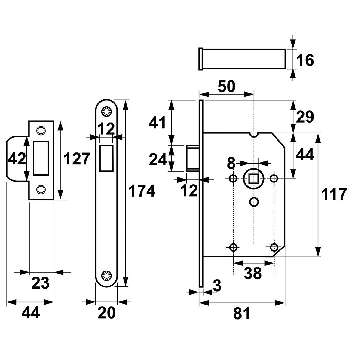 | Bevestigingsmaterialen: | – M4 x 38 mm patentbout: 2 stuks – M4 x 22 mm bus: 2 stuks |