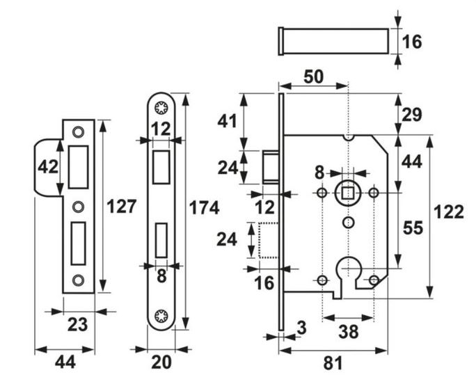 | Bevestigingsmaterialen: | – M4 x 38 mm patentbout: 2 stuks – M4 x 22 mm bus: 2 stuks |