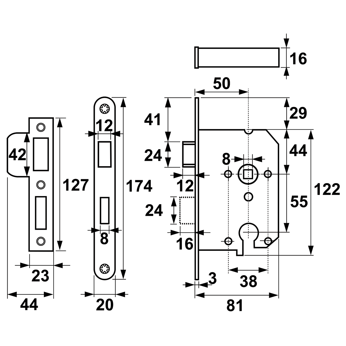 | Bevestigingsmaterialen: | – M4 x 38 mm patentbout: 2 stuks – M4 x 22 mm bus: 2 stuks |