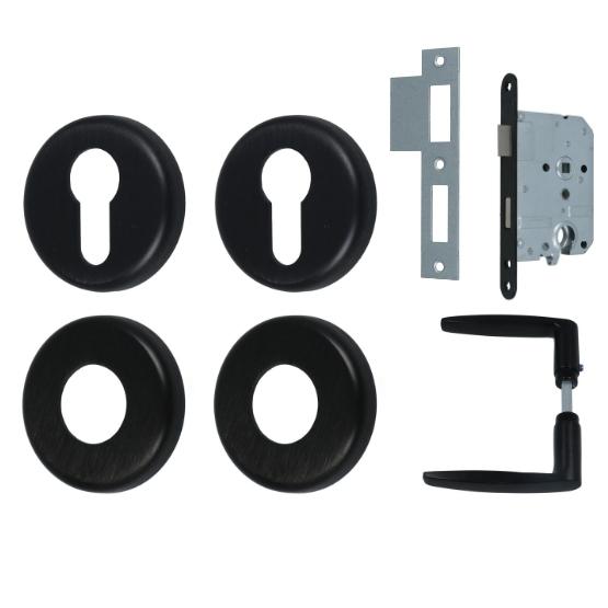 AXA set binnendeurbeslag ronde rozet + dag-nachtslot cilinder zwart