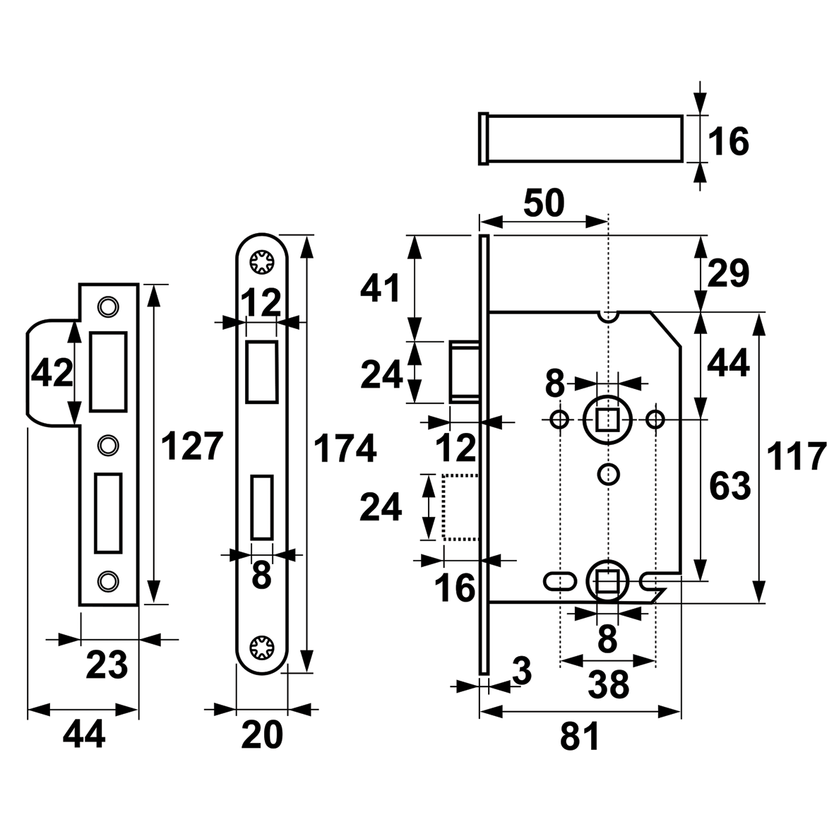 Alle maten zie afbeeldingen.