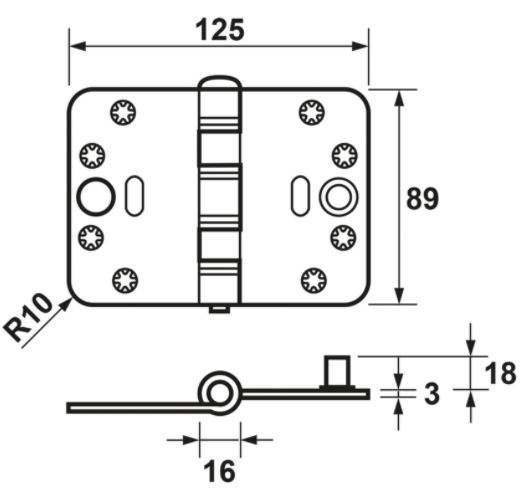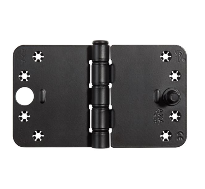 Lichtlopend, inbraakwerend, stalen AXA Smart Easyfix® veiligheids schijflagerscharnier met een extra hoog draagvermogen en ronde hoeken.