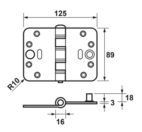 Lichtlopend, inbraakwerend, stalen AXA Smart Easyfix® veiligheids schijflagerscharnier met een extra hoog draagvermogen en ronde hoeken.