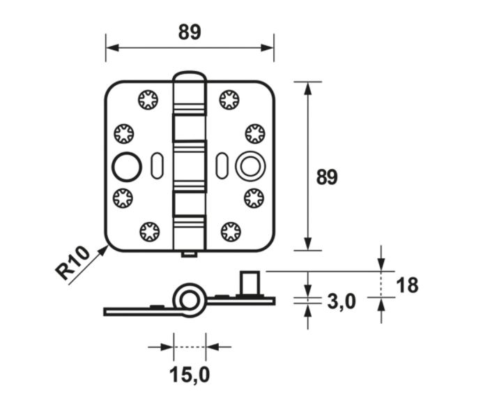 Lichtlopend, inbraakwerend, stalen AXA Smart Easyfix® veiligheids schijflagerscharnier met een extra hoog draagvermogen en ronde hoeken.