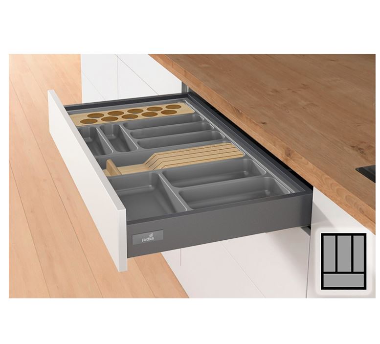 Universeel inzetbare bestekbak met een breedte van 301-350mm en een diepte van 370-440mm.