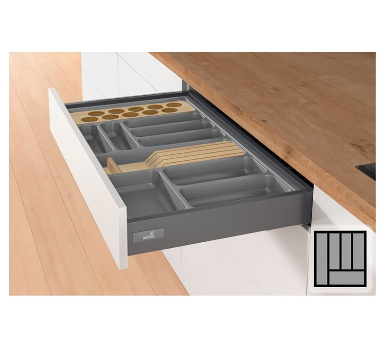 Universeel inzetbare bestekbak met een breedte van 351-400mm en een diepte van 370-440mm.