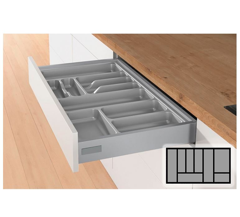 Universeel inzetbare bestekbak met een breedte van 701-800mm en een diepte van 370-440mm.