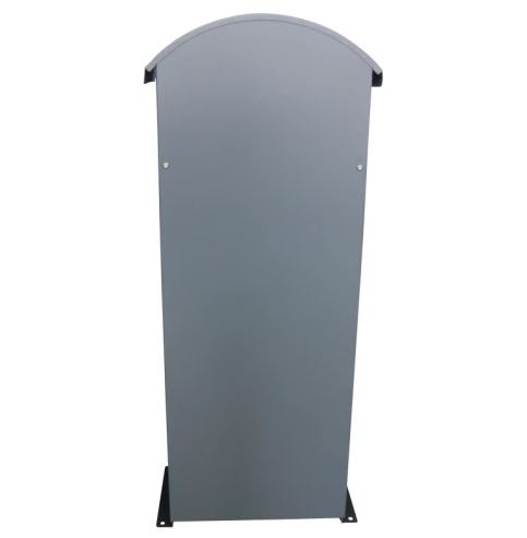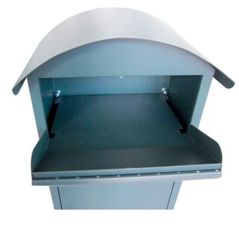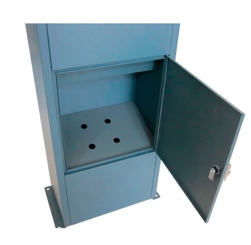 Robuuste, staande brievenbus van gepoedercoat gegalvaniseerd staal. De grote inworpopening (36 x 17 cm) bevindt zich achter de klep. Geschikt voor grotere poststukken en kleine pakketjes. Bij het sluiten van de klep valt de post een verdieping lager in het grote vak dat d.m.v. een cilinderslot afgesloten is.