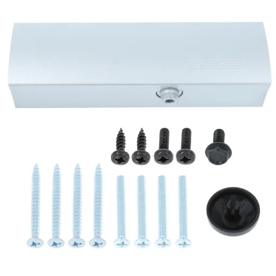 Het slanke deurdrangerhuis is uit massief aluminium vervaardigd met zeer beperkte afmetingen: L 177 mm x D 39 mm x H 50 mm.