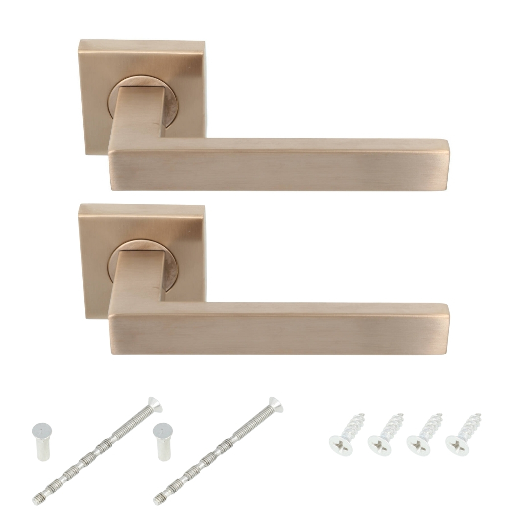 Deurklink BASIC BSQ2-G op vierkant rozet PVD licht brons