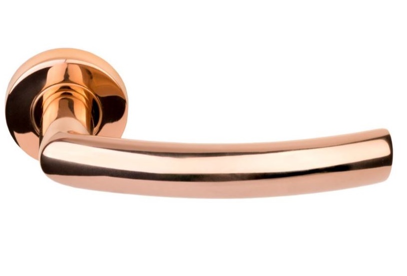 Deurklink BASICS LBXIV op ronde rozet PVD gepolijst Koper