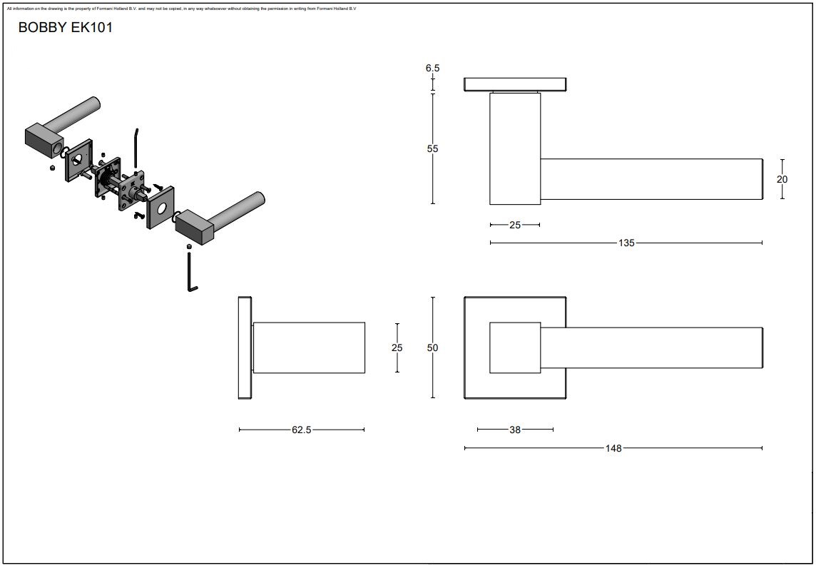 Deze deurklink is geveerd op rozet met metalen onderconstructie. Deze deurklink is van Formani uit de serie BOBBY. De ontwerper van deze deurklink is Eric Kuster. Het materiaal is rvs.
