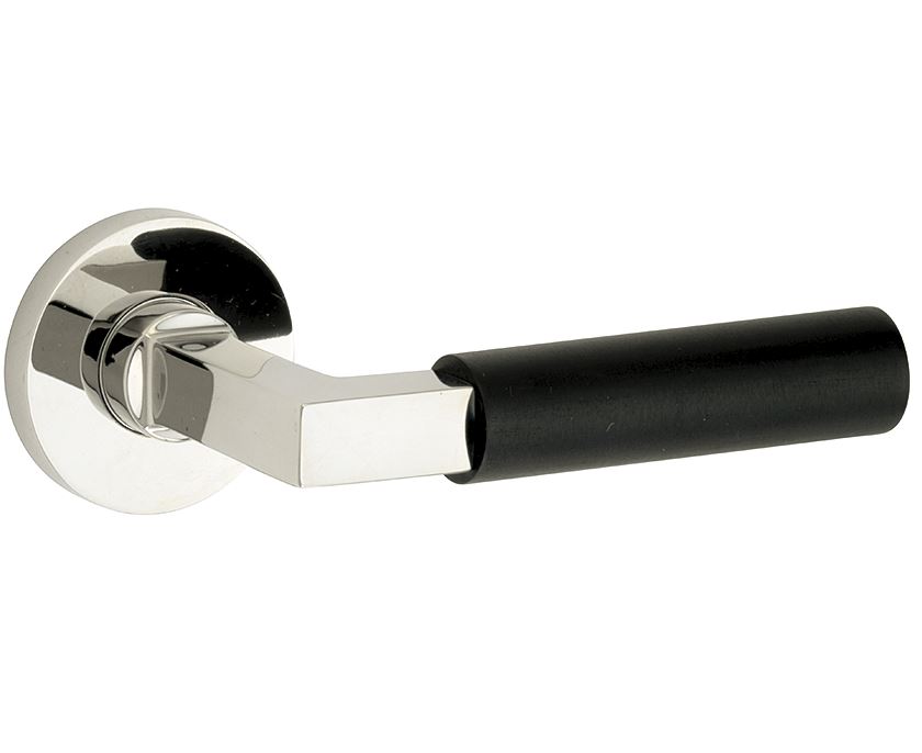 Deurklink op geveerd rozet Bauhaus ebben/Vivo glans nikkel