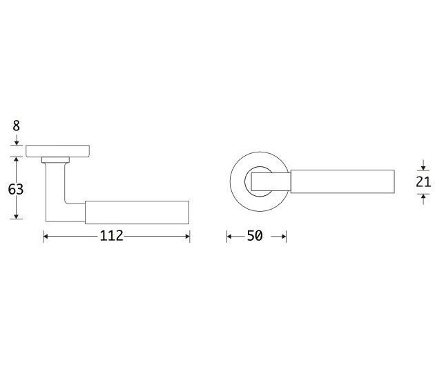 Deurklink op rozet. Het krukrozet is geveerd (voorkomt hangende deurklinken) en de schroefbevestiging op de deur is niet zichtbaar.