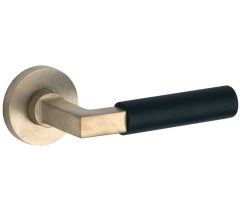 Deurklink op geveerd rozet Bauhaus ebben/Vivo messing ongelakt