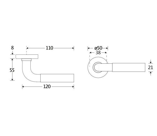 Deurklink op rozet. Het krukrozet is geveerd (voorkomt hangende deurklinken) en de schroefbevestiging op de deur is niet zichtbaar.