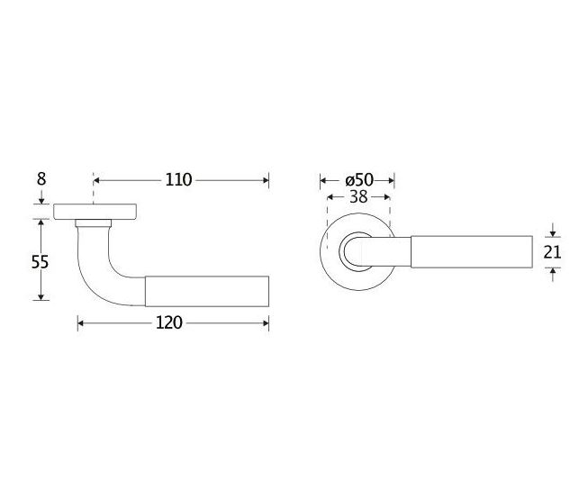 Deurklink op rozet. Het krukrozet is geveerd (voorkomt hangende deurklinken) en de schroefbevestiging op de deur is niet zichtbaar.