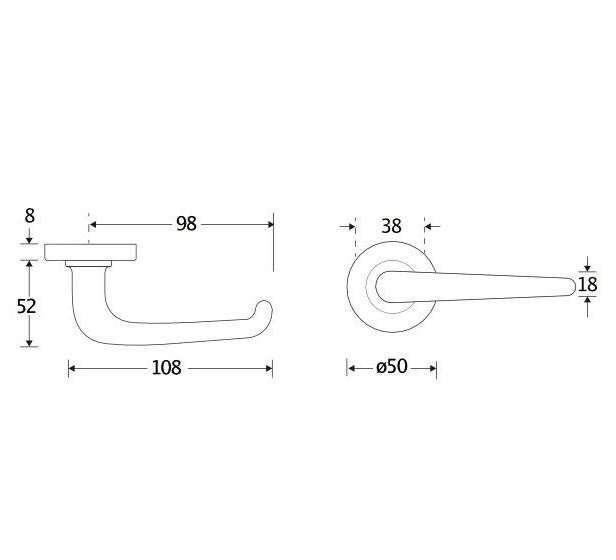 Deurklink op rozet. Het krukrozet is geveerd (voorkomt hangende deurklinken) en de schroefbevestiging op de deur is niet zichtbaar.