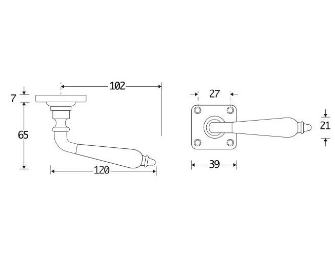 Deurklink op rozet vierkant. Het krukrozet is geveerd (voorkomt hangende deurklinken).