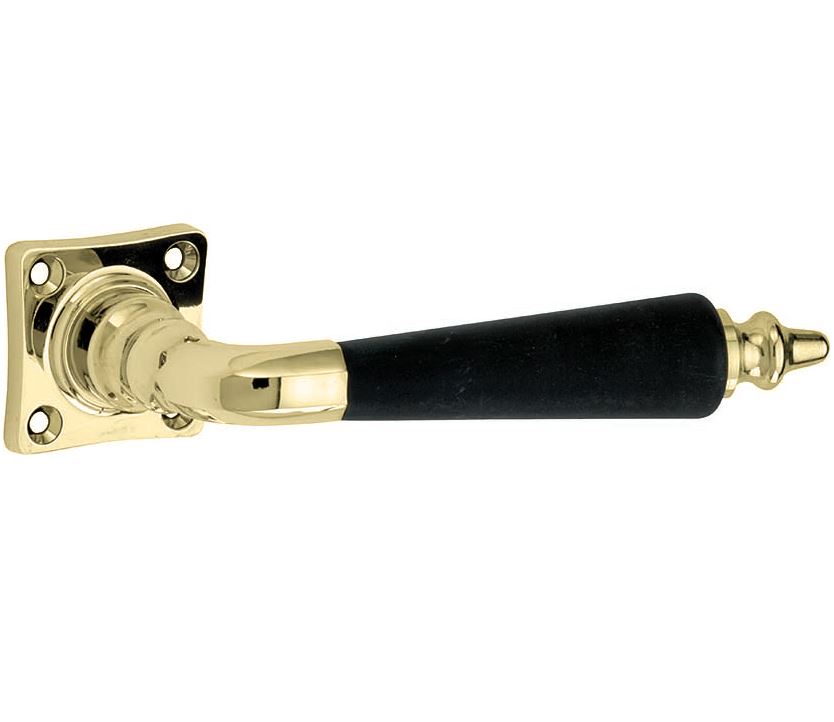 Deurklink op geveerd vierkant rozet Antique ebben messing gelakt