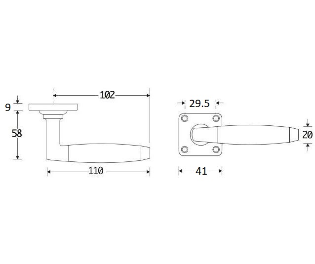 Deurklink op geveerd vierkant rozet Ton ebben mat nikkel ongelakt