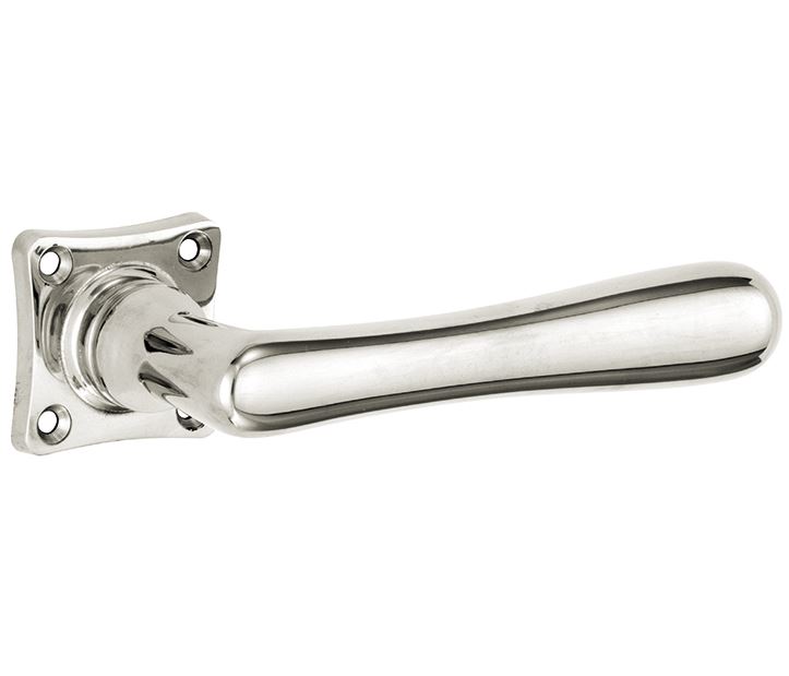 Deurklink op ongeveerd vierkant rozet Linea glans nikkel
