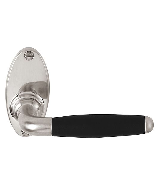 Deze deurklink is van Formani uit de serie Timeless. Het materiaal is mat nikkel en Ebbenhout. Deze deurklink is massief vast-draaibaar, geveerd op ovaal rozet.