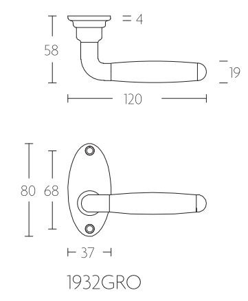 Massieve deurklink vast-draaibaar, geveerd op ovaal rozet