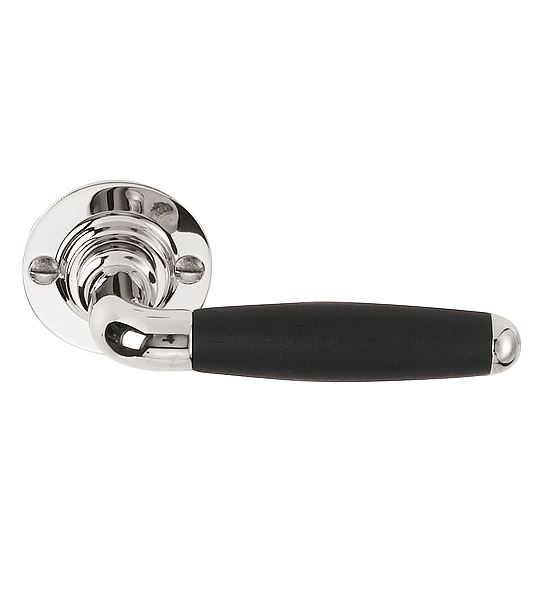 Deze deurklink is van Formani uit de serie Timeless. Het materiaal is glans nikkel en Ebbenhout. Deze deurklink is massief vast-draaibaar, geveerd op rozet.