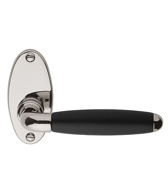 Deze deurklink is van Formani uit de serie Timeless. Het materiaal is glans nikkel en Ebbenhout. Deze deurklink is massief ongeveerd op rozet.