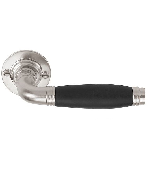 Deze deurklink is van Formani uit de serie Timeless, 1934 Stokstraat. Het materiaal is mat nikkel en Ebbenhout. Deze deurklink is massief vast-draaibaar, geveerd op rozet.