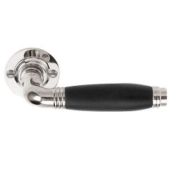 Deze deurklink is van Formani uit de serie Timeless, 1934 Stokstraat. Het materiaal is messing ongelakt en Ebbenhout. Deze deurklink is massief vast-draaibaar, geveerd op rozet.
