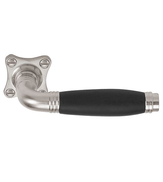 Deze deurklink is van Formani uit de serie Timeless, 1934 Stokstraat. Het materiaal is mat nikkel en Ebbenhout. Deze deurklink is massief, ongeveerd op klaver rozet.