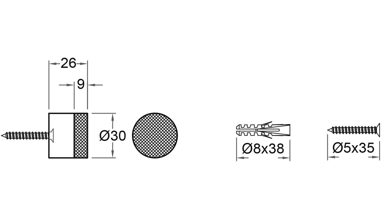 Deurstop wandmontage ø30x26mm rvs mat