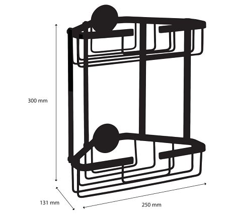 Deze 2-laags driehoekige draadmand van Differnz is een stijlvolle toevoeging aan uw badkamer. De draadmand is gemaakt van aluminium en door het stoere mat zwarte design is het een echte toevoeging aan een moderne badkamer. De draadmand is 25 x 13,1 x 30 cm (b x l x h). De draadmand is eenvoudig bevestigen met de meegeleverde krachtige 3M montagestickers.