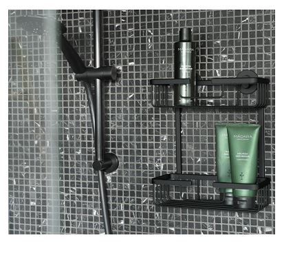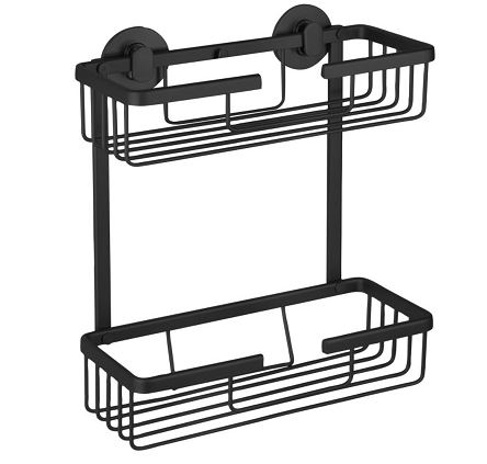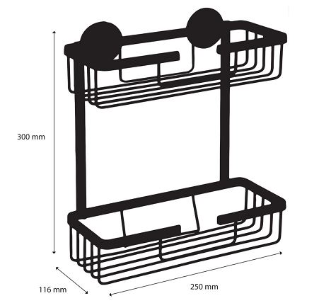Deze 2-laags rechthoekige draadmand van Differnz is een stijlvolle toevoeging aan uw badkamer. De draadmand is gemaakt van aluminium en door het stoere mat zwarte design is het een echte toevoeging aan een moderne badkamer. De draadmand is 25 x 11,6 x 30 cm (b x l x h). De draadmand is eenvoudig te bevestigen met de meegeleverde krachtige 3M montagestickers.